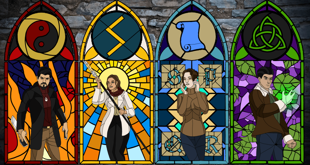 The four original Companions drawn in a stained-glass-ish style. I’m going really heavy into the church aesthetics, so I wondered how it would look.